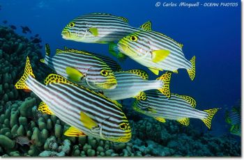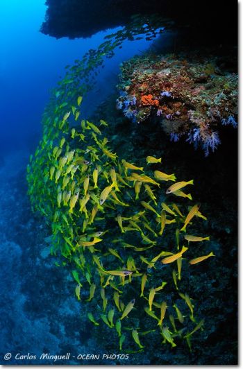 ¿Y Maldivas? Pues bien. En cada una de las 3 semanas estuvimos en el agua con tiburones ballena y mantas (¡Qué más se puede pedir!) y tuve experiencias que no formaban parte del menú en 2003: las nocturnas con tiburones nodriza y con mantas son, decididamente, diferentes y divertidas. Fotográficamente me lo pasé bien; sin fotones de-no-te-menees, pero con un buen número de fotos decentes. Casi no hice macro, solo 3 buceos de 54 con el 105mm, no porque el lugar no lo merezca, que sin duda tiene un buen número de bichitos vistosos, si no porque me apetecía más dejar el angular puesto y esperar a que las cosas sucedieran. La vida a bordo, solo puedo calificarla de excelente. Pocas tripulaciones he conocido que hicieran tan bien su trabajo como la del Eagle Ray estas semanas: profesionales y cordiales a partes iguales. Desde aquí mi agradecimiento a todos ellos, así como a los fotosubs y no fotosubs con quienes he tenido el placer de convivir estos días. Ojalá nos volvamos a encontrar en el mar y podamos compartir más buenos momentos dentro y fuera del agua.